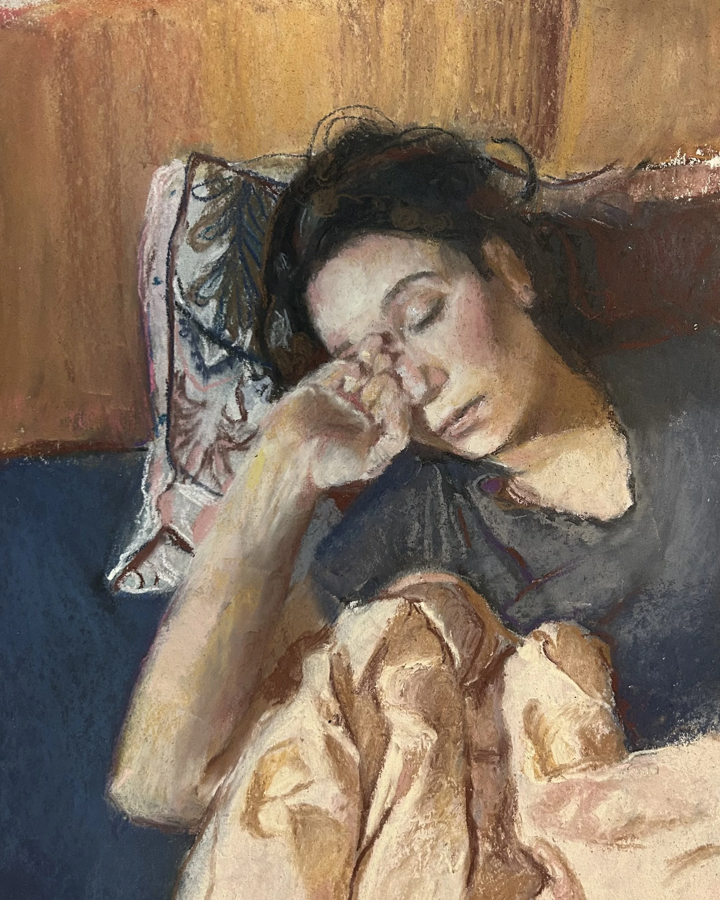My work grows out of slowness, compassion, and relationship. Through drawing, writing, and textile-based processes, I explore care as both a personal and collective practice—one that emerges from my experience with Chronic Fatigue Syndrome (ME/CFS). Much of my imagery arises from the people and places that give me solace—my home, my backyard, my family—or from moments that document the experience of illness itself. These spaces become metaphors for compassion and connection, while the process of making becomes a way to draw and create with gentleness. Each piece is a small act of attention, an invitation to soften, to feel, and to find meaning in the quiet rhythms of care.